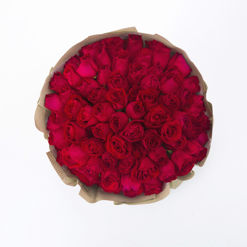 白色雪梨纸、驼色卡纸包装,浅紫色缎带蝴蝶结束扎。