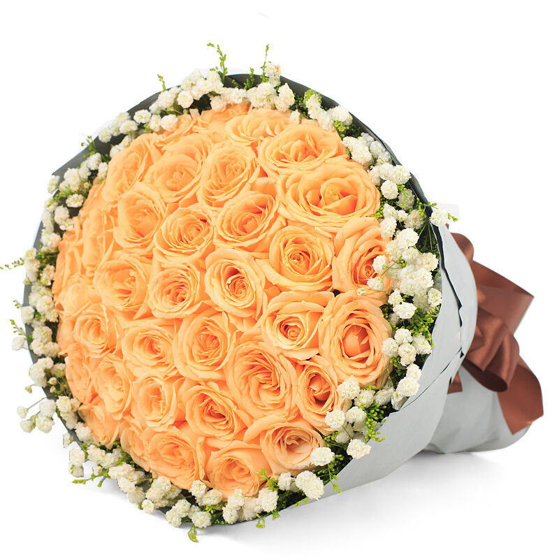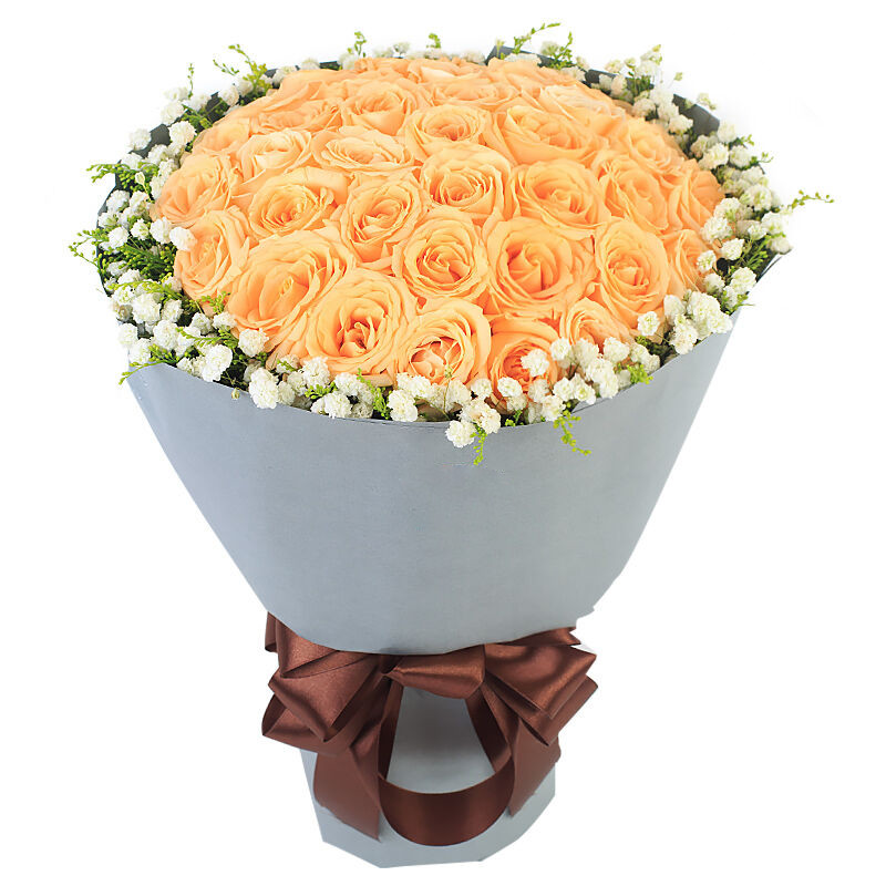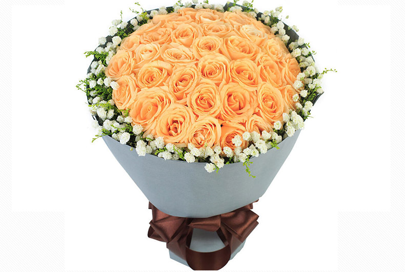 灰色厚牛皮纸圆形包装,搭配精美咖啡色缎带蝴蝶结束扎。