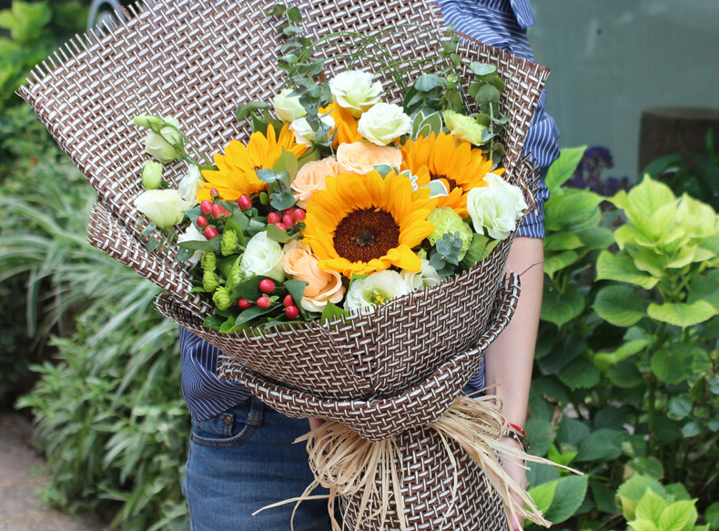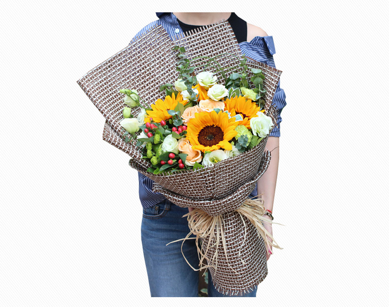 咖啡色麻片扇形包装,拉菲草束扎