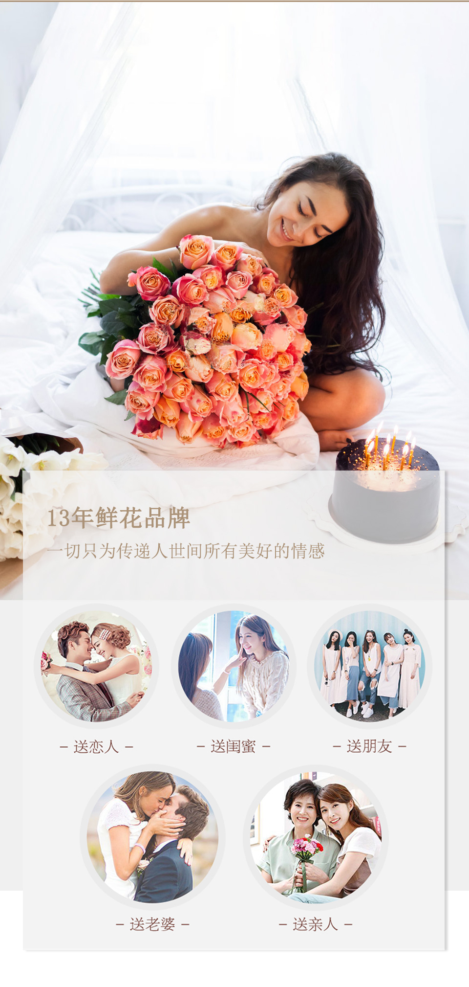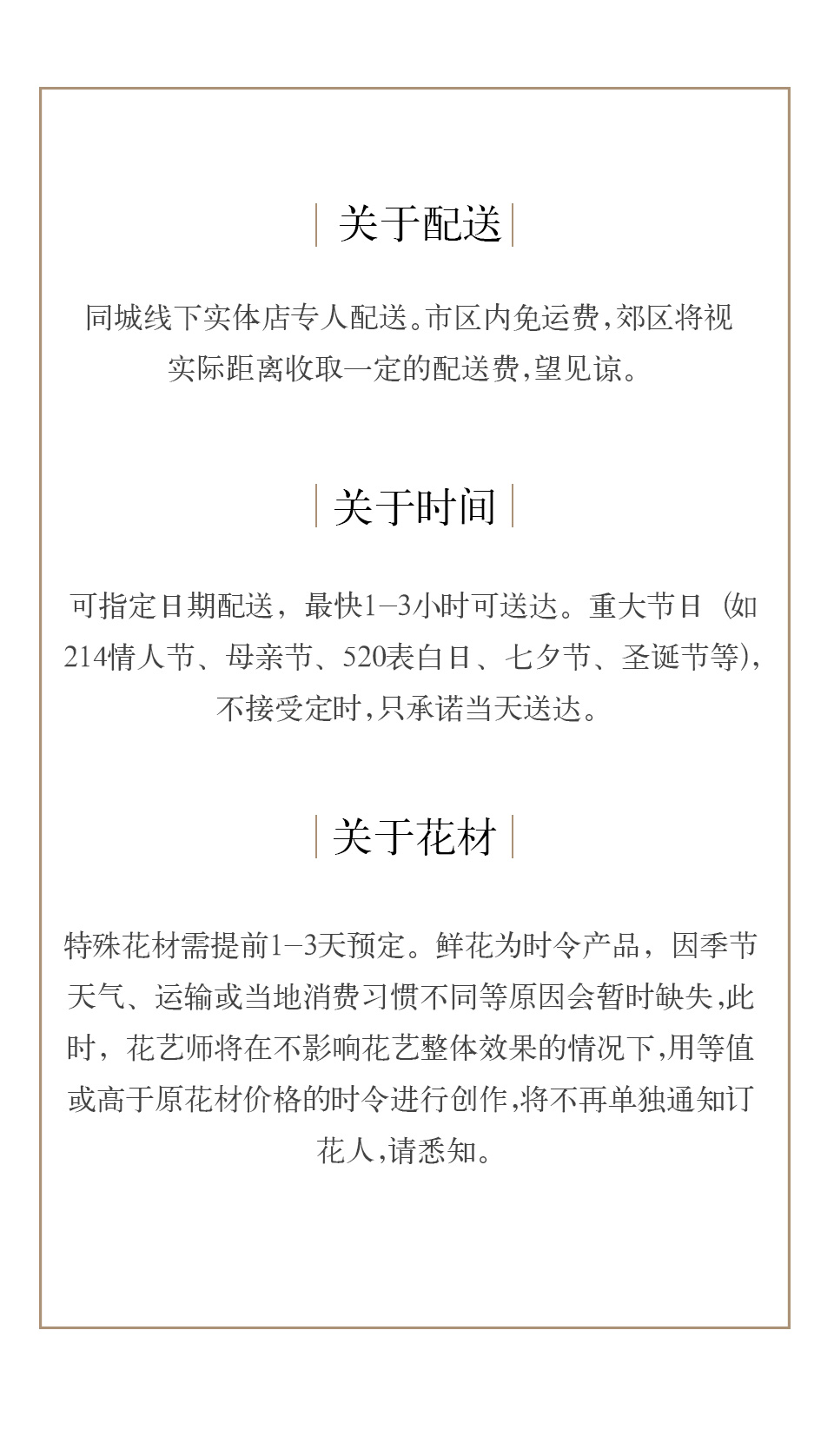 白色透明纸、咖啡色落水纸圆形包装,拉菲草束扎。