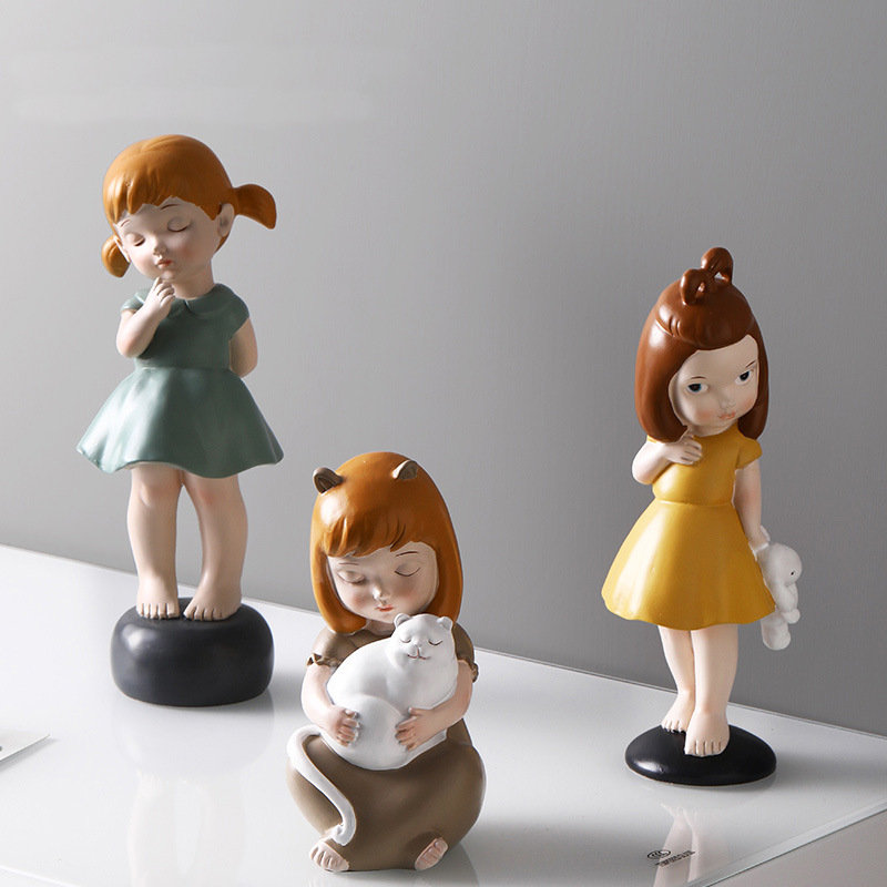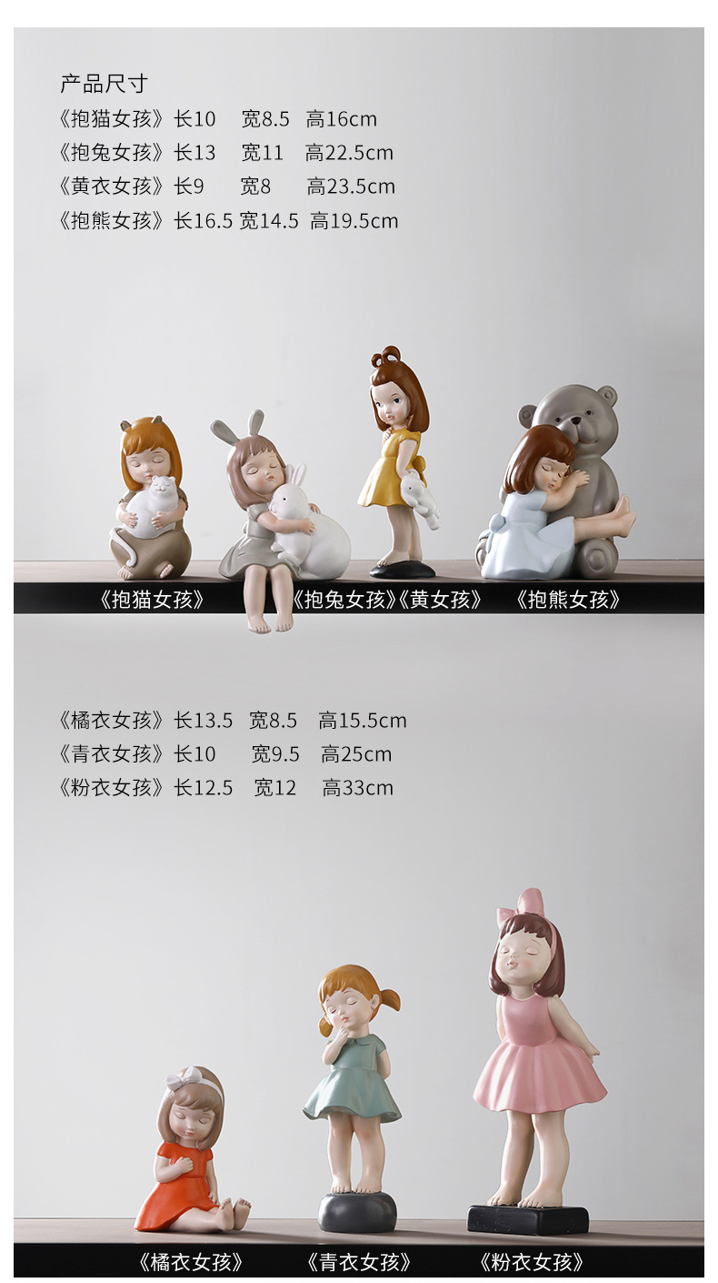 可爱创意少女心桌面饰品摆件-抱猫女孩