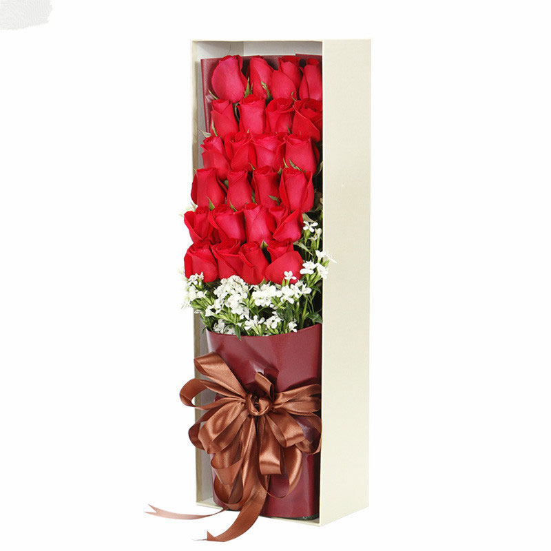 酒红色牛皮纸扇形包装,咖啡色缎带蝴蝶结扎束,精品礼盒包装