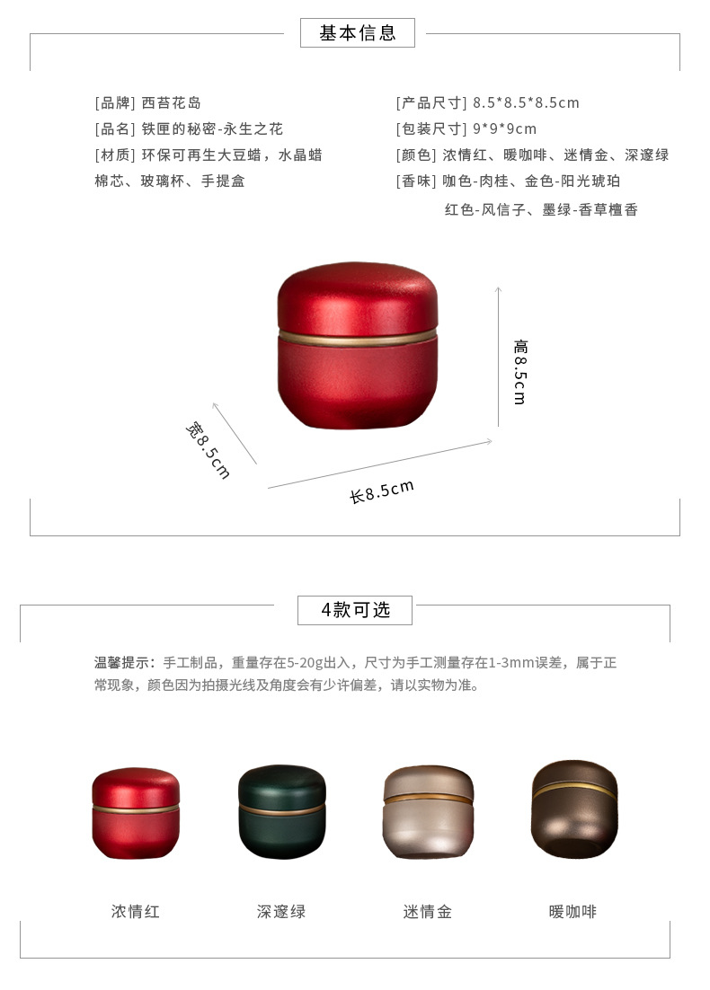 铁罐永生花新款香薰蜡烛-浓情红