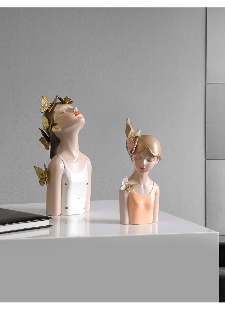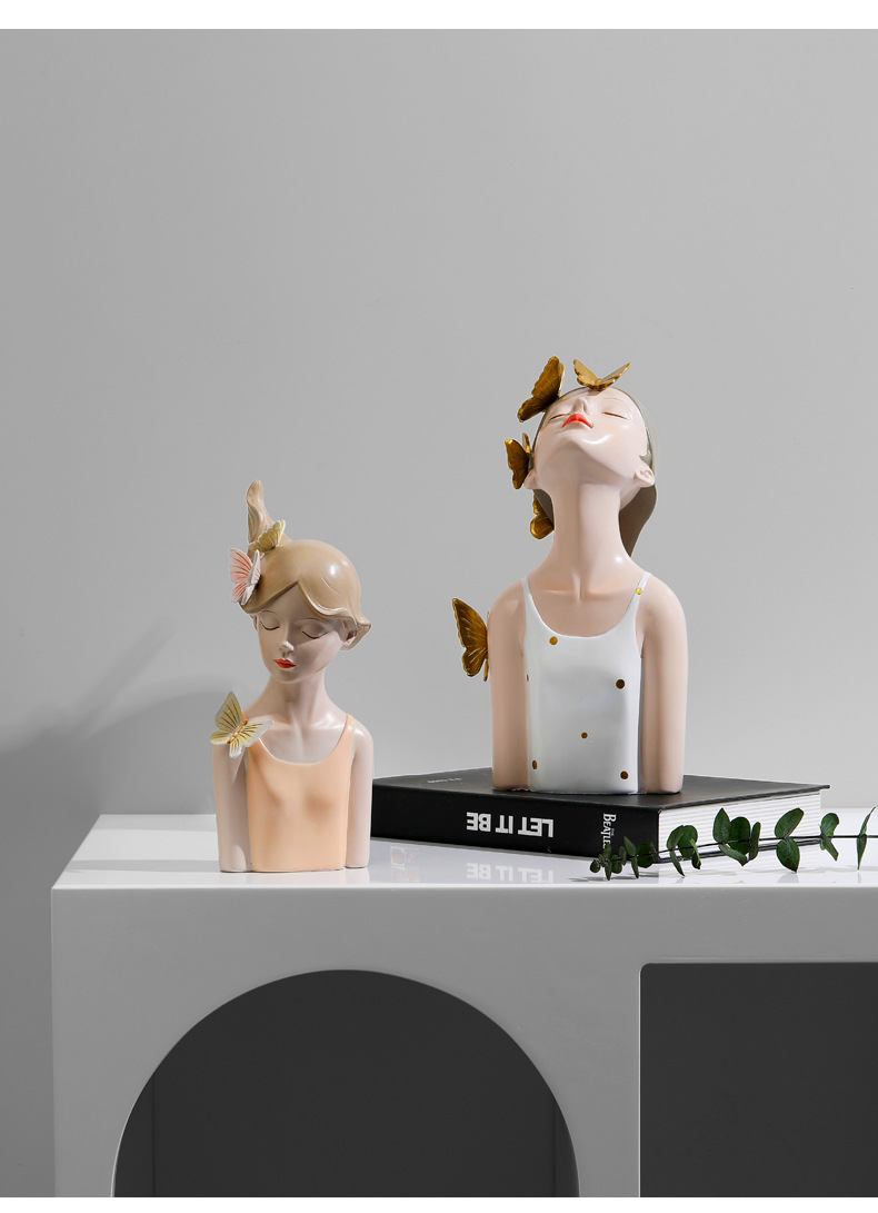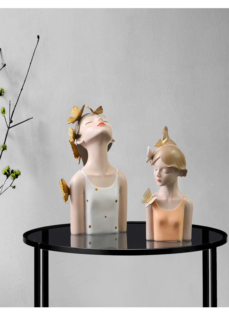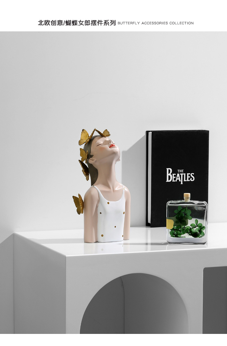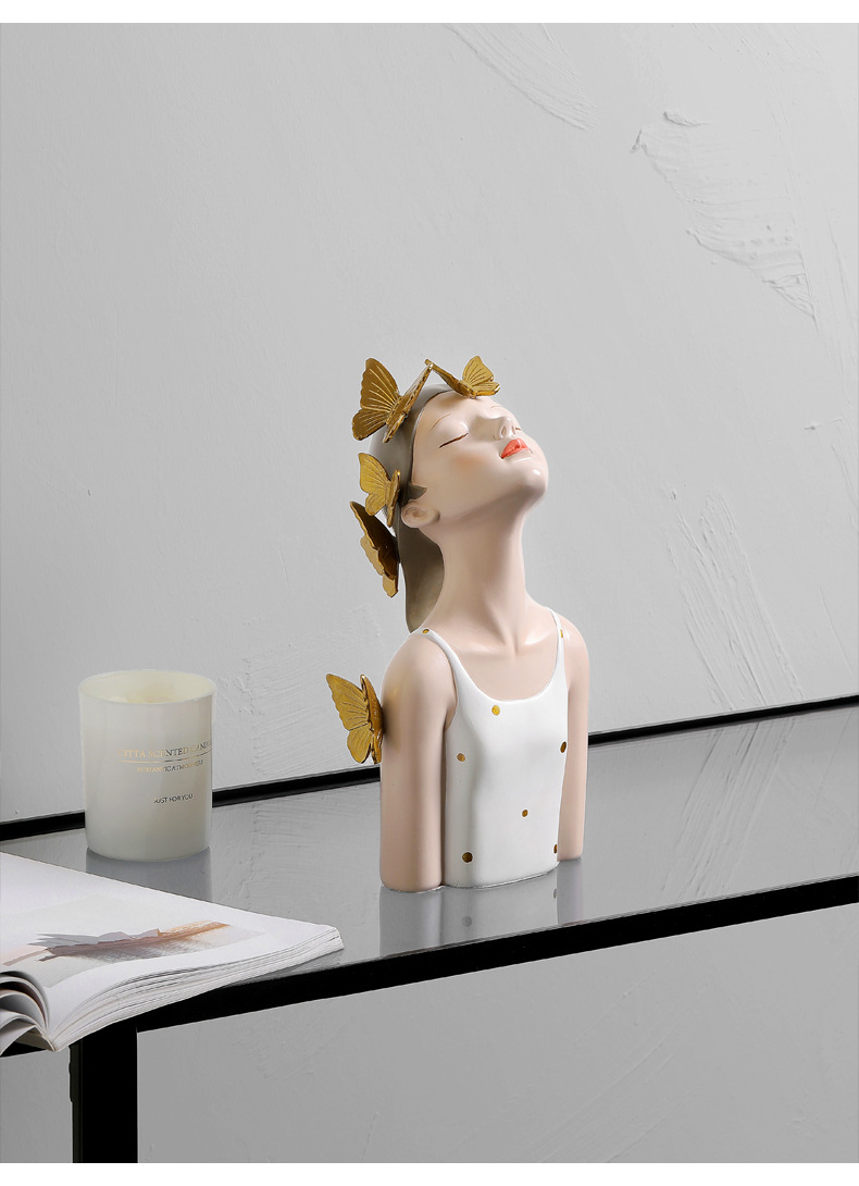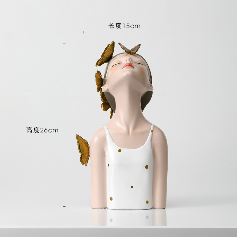 蝴蝶结女孩创意装饰摆件-波点白衣款